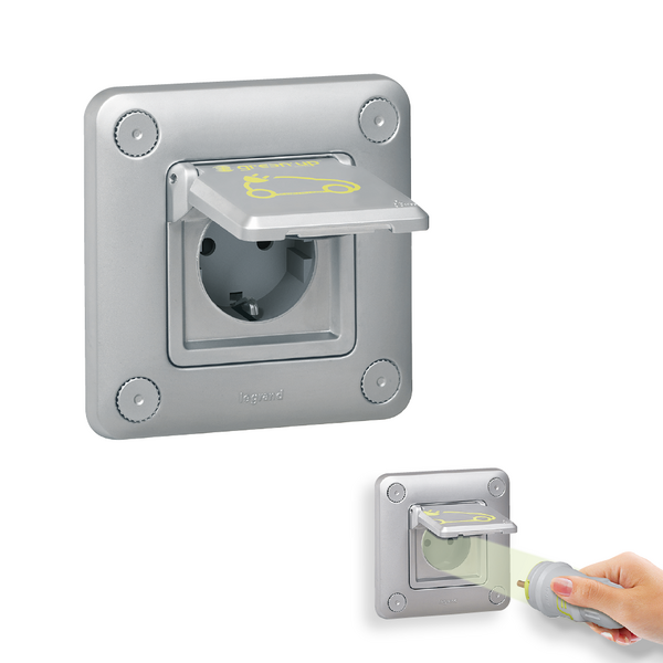 - Verstärkte, Steckdose, Robust und Wassergeschützt IP 55 (mit geschlossenem Deckel) . Entwickelt für aufladbare Elektro- und Hybridfahrzeuge